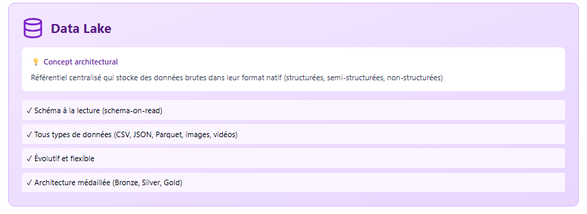 Il permet de stocker, organiser et analyser de très grands volumes de données dans leur format natif, tout en bénéficiant des capacités du cloud Azure en matière de performance, sécurité et évolutivité.