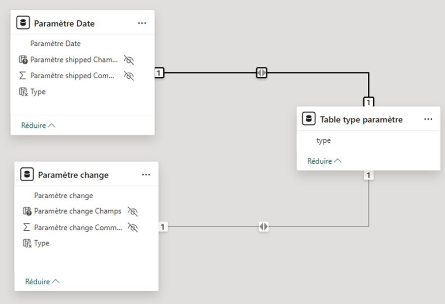 Ensuite l’utilisateur lie les deux paramètres à la table « Table type paramètre » :
