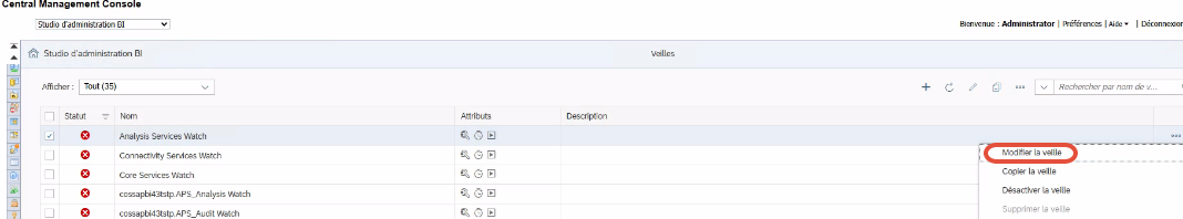 Connectez-vous à la CMC (Central Management Console) et accédez à Applications >> Application d’alerte >> Clic droit >> Propriétés