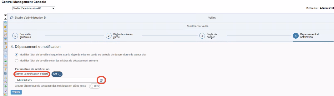 Dans le quatrième onglet, Dépassement et notification, sous « Options de notification », cochez l’option « Activer les notifications d’alerte ».
