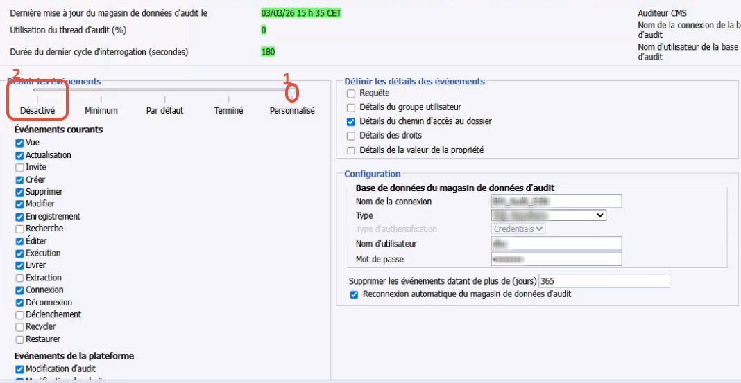 Si l’audit n’est pas configuré, mais que le curseur est à un niveau autre que Désactivé, il générera toujours les événements en fonction des événements sélectionnés.