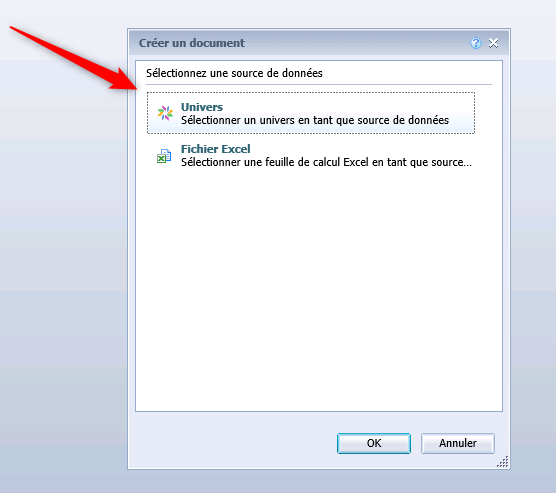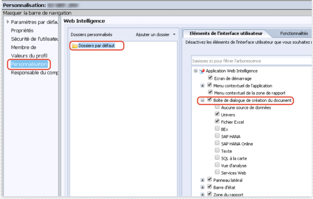 Il est nécessaire de masquer une de source de données spécifique disponible au moment de la création de documents Web Intelligence.