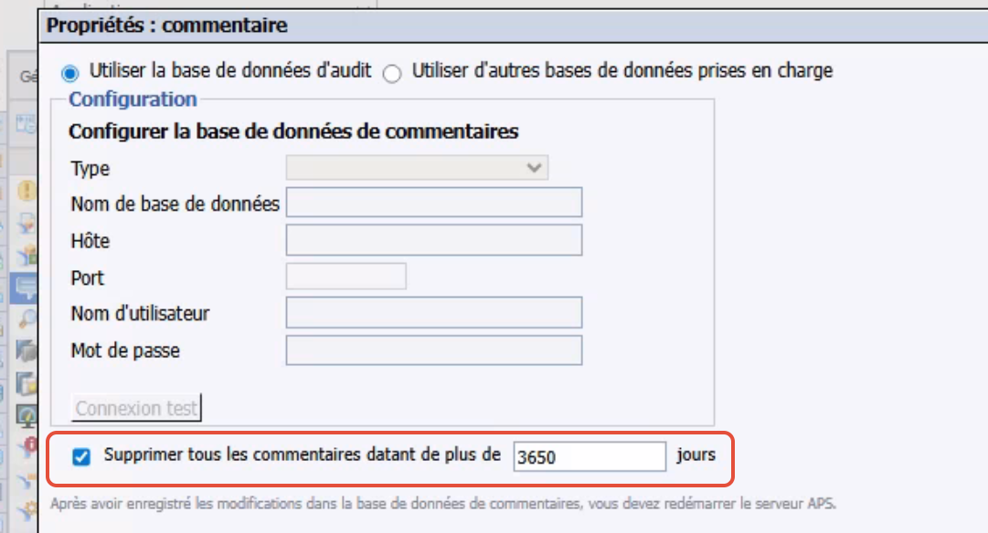 Saisissez le nombre de jours après lequel les commentaires doivent être supprimés.