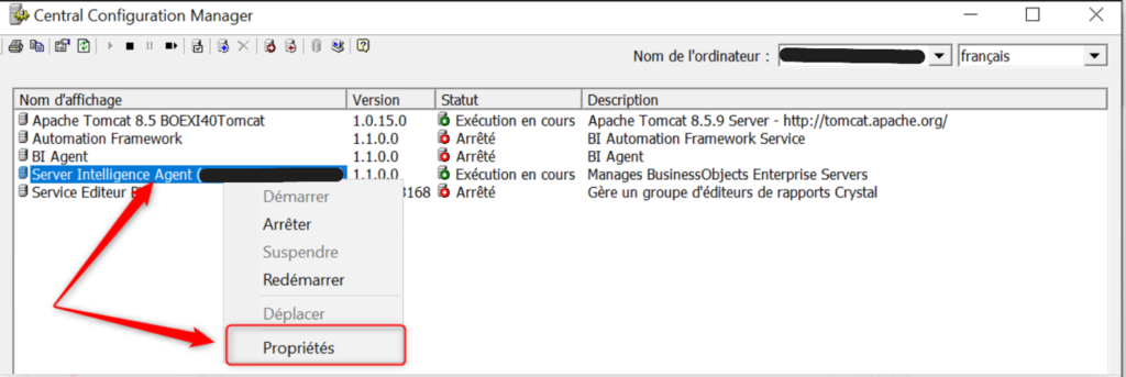 Clic droit sur le Server Intelligent Agent (<Nom du CMS>) puis Propriétés