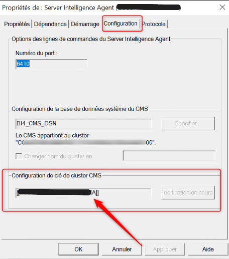 Aller dans l’onglet Configuration puis copier la clé situé sous Configuration de clé de cluster CMS