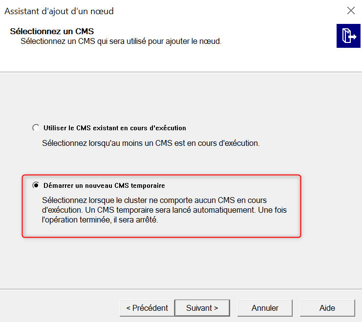 Choisir Démarrer un nouveau CMS temporaire puis Suivant