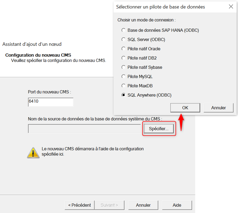 Entrez le même port sous port du nouveau CMS que le CMS existant, et spécifier le Nom de la source de données de la base de données système du CMS