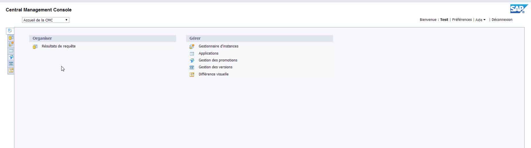 6/ Avant de terminer la session, notre utilisateur « Test » avait accès à la plateforme :