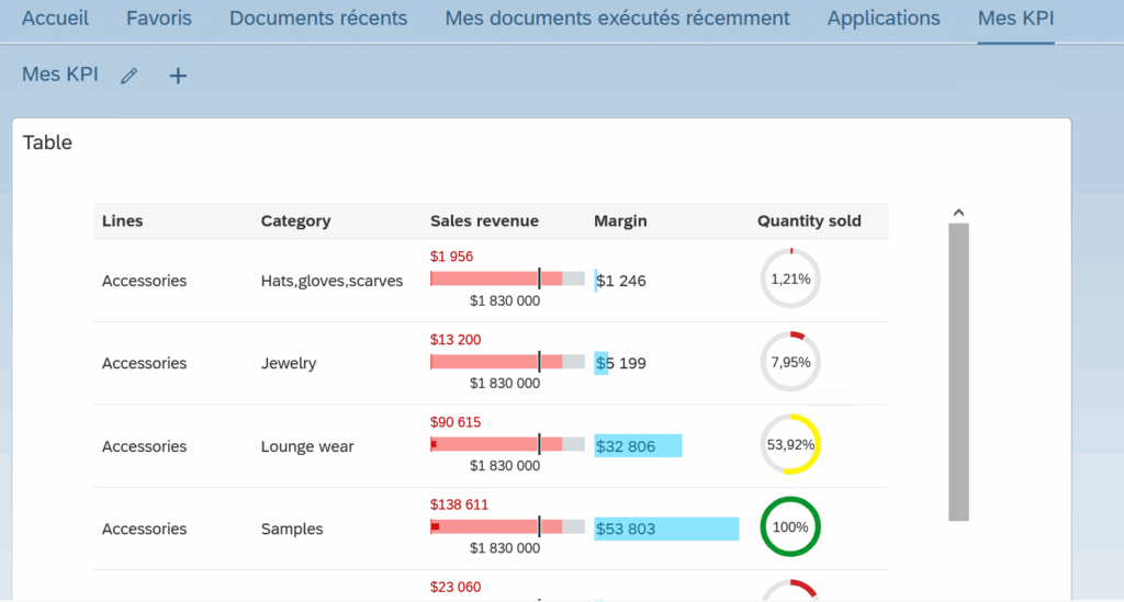 Mettre en avant un indicateur clé ou un élément de rapport directement sur la page d’accueil du BI Launch Pad, sous forme de tuile interactive, pour un accès rapide et personnalisé aux données importantes.