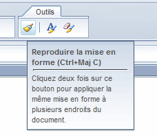Sélectionnez les options « Format / Outils » puis cliquez sur l’icône « reproduire la mise en forme«