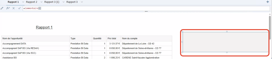 Nous serons amenés à utiliser une cellule libre afin d’ajouter un commentaire global sur un rapport.