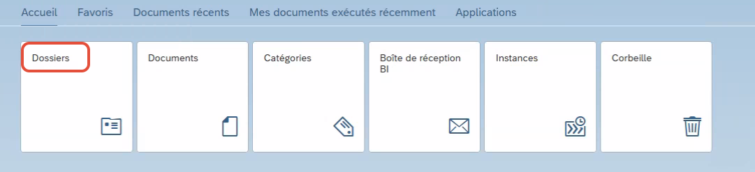 Depuis la page Accueil, cliquez sur la vignette Dossiers.