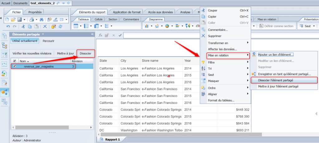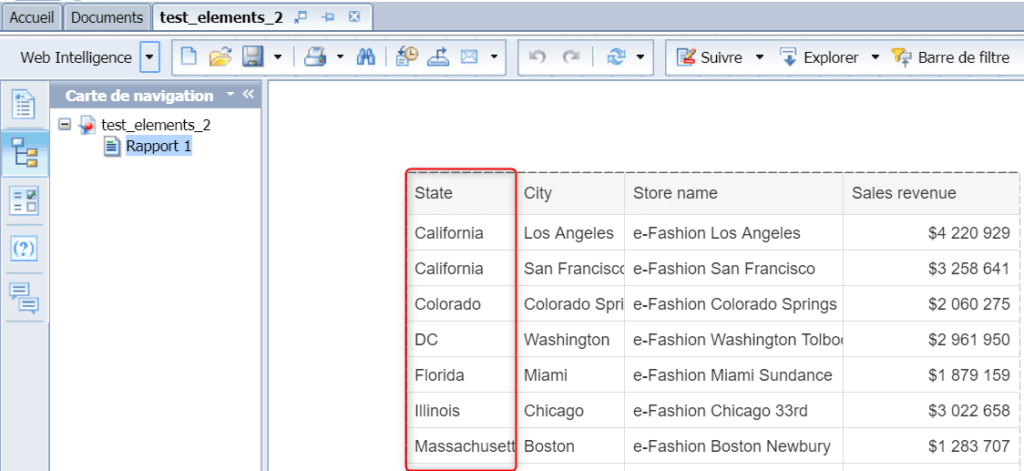 Revenez dans le document WebI utilisant l’élément partagé, vous pouvez voir que celui – ci a automatiquement été mis à jour :