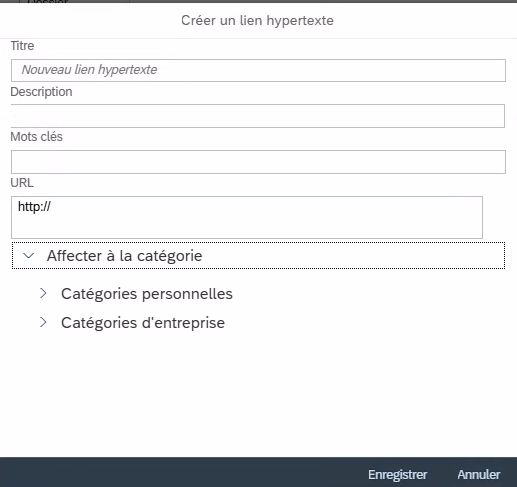 Catégories – Vous pouvez affecter l’InfoObject du lien hypertexte à une catégorie de votre choix.